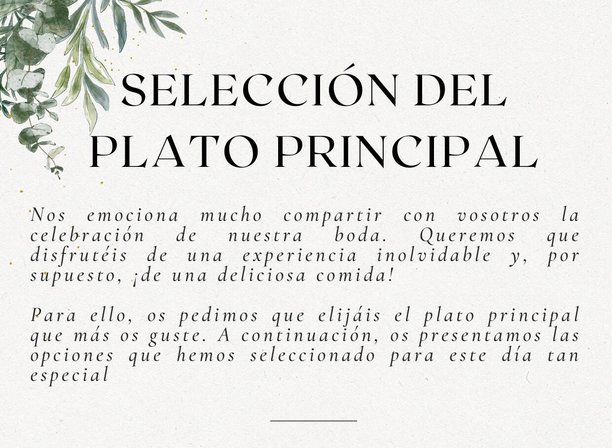 Elegir el plato principal que deseéis comer en el convite. (Ver Platos)